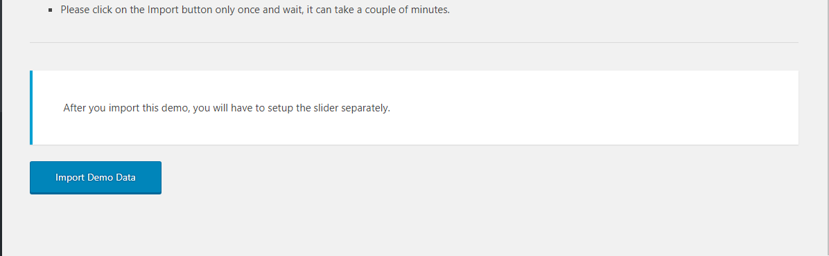 The fastest way to import our demo content is to use the Demo Content Importer. The Demo Content Importer provides you with all of Grassy’s pages and posts, sample sliders, widgets, theme options, assigned pages, and more. Using this import feature is recommended for fresh installs. The automatic import will NOT replace existing content however. We always recommend running it on a fresh WordPress installation.